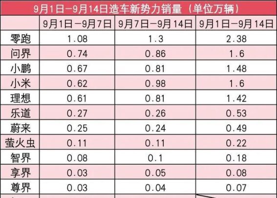 导读:在刚刚过去的9月第二周(9月8日至9月14日),中国新能源汽车市场迎来了新的销量数据。在这场竞争愈加激烈的角逐中,零跑领跑,销量表现稳居榜首,而小米以接近万辆的