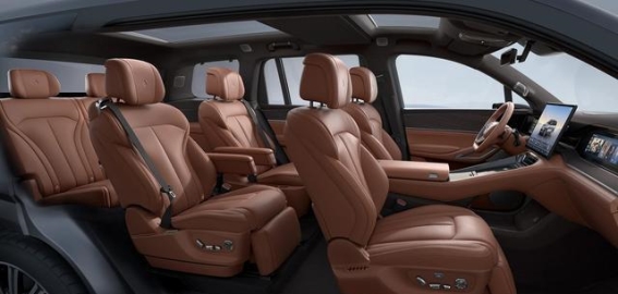 进入车内,2026款腾势N9的内饰设计则进一步提升了豪华感和现代感。新车提供的“金山棕”内饰配色,带来了全新的视觉享受,提升了车内的档次与氛围。更值得一提的是,车内搭载的多块超大屏幕,如50英寸AR-HUD抬头显示、13.2英寸的2.5K液晶仪表盘、17.3英寸的2.5K中控屏和13.2英寸副驾屏,充分展现了腾势在科技方面的创新与领先地位。这些大尺寸屏幕不仅提升了驾驶员与乘客的使用体验,也为车辆的智能化操作提供了极大的便利。新车搭载的4nm车机芯片,让系统更加流畅和高效,进一步提升了车辆的智能化水平。