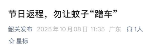 总体来看,中秋国庆返粤的防蚊工作核心在于“预防为主,监测为辅”。从返程前的准备,到返程中的防护,再到返程后的健康监测和环境清理,每一个环节都密切相关,缺一不可。健康返程不仅是个人责任,也是对家庭和社会的关心。通过主动清理积水、合理使用驱蚊产品、科学选择衣物和防护细节,以及返程后的健康监测,蚊媒传染病的风险可以被有效控制。让每一次返程都成为安全、健康的旅程,让假期的美好记忆在健康保障下延续。全社会共同行动起来,清除积水、防止叮咬、及时就医,才能真正让健康稳稳“续航”,让返程后的生活平安顺畅。