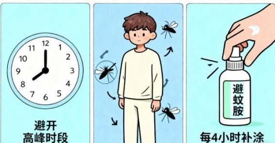 返程途中,防蚊措施更要精准和科学。蚊虫尤其是伊蚊,多在清晨7点到9点及傍晚16点到19点活跃,这段时间应尽量减少在户外停留,尤其是树荫、草丛、水池等阴暗潮湿的地方。正确使用驱蚊剂同样重要,应喷或涂抹在头部、手臂、腿部等裸露皮肤,每隔2至4小时补涂一次,如出汗或游泳后应及时再次涂抹,以保持持续防护效果。返程途中尽量穿浅色、宽松的长袖衣裤,并注意扎紧袖口和裤脚,避免蚊虫钻入衣物。通过科学防护,可以大幅降低被蚊虫叮咬的风险,让返程旅途更加安心顺利。