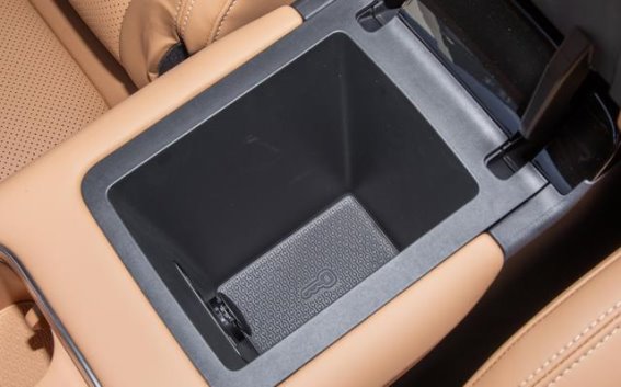 车内的设计则更是让人眼前一亮。内饰采用了暖沙棕色调,不仅温馨,还能营造出一种非常舒适的家庭氛围。中控台采用对称式环抱布局,12.8英寸的悬浮中控屏无疑是车内的视觉中心。无论是显示清晰度还是操作流畅度,都表现得相当出色。最让我惊喜的是电子怀挡的设计,它解放了传统挡把的位置,让副仪表台得到了更多的空间。上层是带风冷功能的50W无线充电板与杯架,充电速度快且不会使手机发热,这对于长途驾驶中的手机充电需求尤其重要;下层则提供了足够大的储物空间,非常适合放置女士手包或孩子的零食袋等小物件。