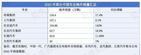 在全球化的进程中,海外市场已成为中国车企争夺的重要战场。2025年,奇瑞、上汽和比亚迪等车企在海外市场的表现尤其突出,三大车企成功跻身“百万辆俱乐部”,稳居全球汽车市场的第一梯队。奇瑞汽车凭借134万辆的出口销量,稳居海外市场的领跑者,并在欧洲市场不断拓展,进入了英国、西班牙和意大利等高法规市场。