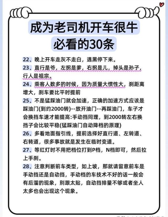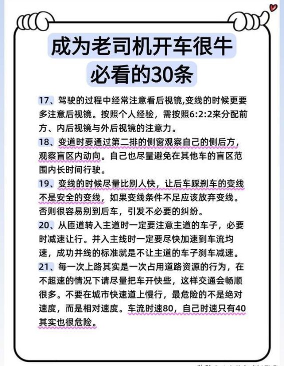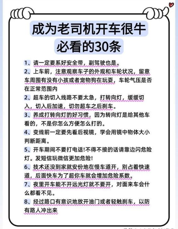 成为一名合格的老司机,不仅需要时间的积累,更需要心态和技术的共同提升。这30条法则,每一条都至关重要,从心态、习惯到技术的全面提升,最终能帮助你从一个新手,成长为被他人信赖的“老司机”。记住,稳重与安全始终是驾驶的核心,只有在稳步的基础上积累经验,才能真正做到熟能生巧。