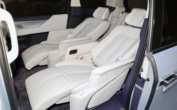 座椅方面,别克GL8陆尊PHEV采用了2+2+3的7座布局,并全系标配Nappa真皮座椅。第二排座椅无疑是最为舒适的位置,支持320mm电动前后滑动和160°大角度调节,并配备电动腿托。加热、通风、按摩功能一应俱全,长时间乘坐也不会感到疲劳,甚至可以媲美高端航空座椅。第二排还配备了升降屏幕与小桌板,提升了商务出行时的便捷性。