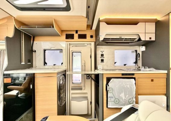 FT800的智能科技和生活设施堪称豪华,完美打造了一个移动的智能家园。房车配备了605W的顶置太阳能电池板与48V/200AH的锂电池,提供持续的电力供应。5000W车载逆变器与智能电路控制系统通过7寸触摸屏进行操控,简便快捷。车内还设有新能源交直流外接充电口与15米外接电源线,能够满足所有用电需求。厨房设施十分完善,配备了两个房车专用冰箱、900W电磁炉、微波炉、柴油灶与洗菜盆,提供全面的烹饪解决方案。FT800还配有3.0KG洗烘一体机和200L的净水箱及100L的灰水箱,确保了长时间旅行中的生活需求。卫生间则采用美标食品级水路系统,配有三防一通功能,防水、防臭、防霉变,并具备通风设计,确保车主的健康与舒适。