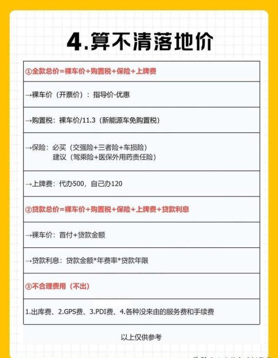 如果选择贷款购车,除了裸车价外,还要考虑贷款利息和手续费。在签署贷款合同前,一定要明确总利息、月供和贷款年限,避免“低首付”或“零利率”宣传背后隐藏的高额隐性费用。