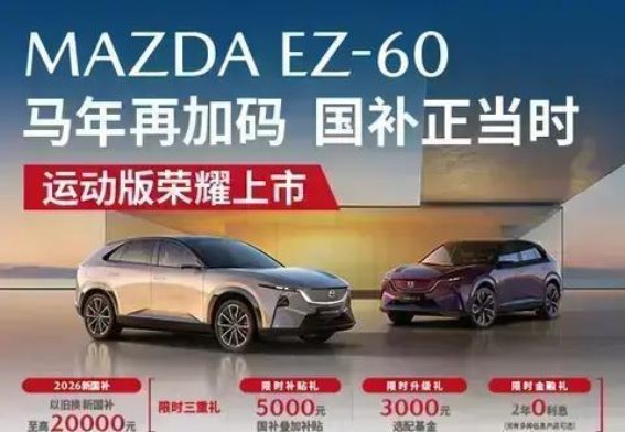 长安马自达通过EZ-60运动版,精准地抓住了市场对高性能SUV的需求,并在国家补贴政策的加持下,迅速抢占了细分市场的先机。对于那些追求驾驶乐趣与生活品质的消费者来说,EZ-60运动版无疑是一个非常理想的选择。而在国家补贴政策的助力下,消费者不仅可以享受更低的购车成本,还能享受到长安马自达提供的多重优惠政策,提升了整体购车体验。