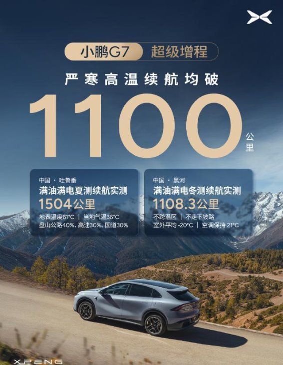 总体来看,小鹏G7超级增程在续航和出行体验上都实现了突破。无论是吐鲁番的夏季高温1504公里续航,还是黑河冬季1108.3公里续航,都证明了其在极端环境下的可靠性和强大适应能力。日常城市出行中,车辆同样提供充足的续航余量和灵活的能量管理,让用户无需担忧电量问题。小鹏G7不仅在技术上领先,更在用户体验上提供了安心保障,让出行变得从容而高效,真正实现了“极限续航,无忧出行”的目标。