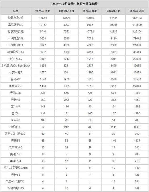 从2025年12月的销量数据来看,豪华中级车市场的竞争形势更加复杂。宝马3系凭借其出色的产品力和品牌认同,持续领跑市场,而奔驰C级和奥迪A5L则面临不同程度的销量下滑。在二线豪华品牌中,雷克萨斯ES凭借高性价比持续稳健表现,而凯迪拉克CT5则面临市场瓶颈。