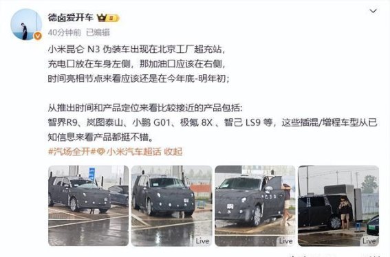 导读:近日,一款名为“小米昆仑N3”的新车曝光,引发了业界和消费者的广泛关注。这款车的出现标志着小米在新能源汽车领域的一次重要布局,特别是针对家庭市场的中大型增程SU
