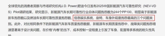 与电池和电机的稳定性相比,新能源车的配件问题则是消费者普遍忽视的一个隐患。许多新能源车的设计强调智能化,配备了丰富的高科技配置,从车机系统到自动驾驶辅助系统,几乎所有车型都将这些智能化功能作为“标配”。这些高科技配置在长期使用中,可能会带来一些质量问题。