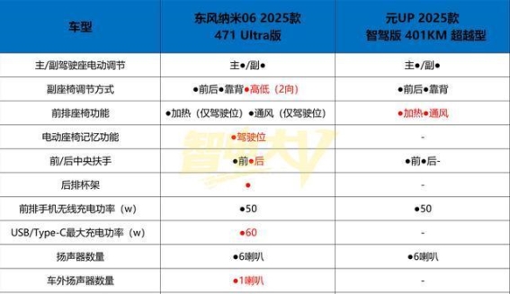 对于年轻人来说,车内的氛围和配置同样至关重要。毕竟,内饰是车主大多数时间接触和体验的地方。在这方面,东风纳米06和比亚迪元UP都各有特点,但东风纳米06的表现明显更加用心。