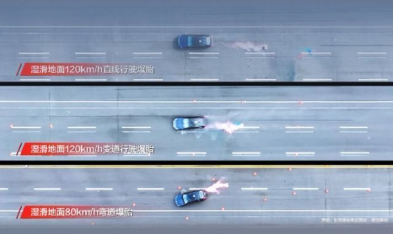 在安全性能方面,凡尔赛C5X的表现同样令人赞叹。为了检验其在极端情况下的稳定性,车辆接受了湿滑路面上的一系列爆胎,包括120km/h的直线行驶爆胎、120km/h的变道行驶爆胎以及80km/h的弯道爆胎。无论是哪种情况,凡尔赛C5X始终保持了极好的稳定性,未发生失控现象,偏航角始终控制在15°以内,确保车辆在极限情况下依然能够保持可控状态。