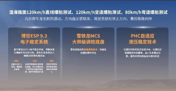 这些出色的表现得益于凡尔赛C5X搭载的先进技术。博世ESP9.3电子稳定系统实时调整未爆胎车轮的扭矩分配,避免了车身出现横摆或蛇形等失稳状况。雪铁龙MCS大师级调校底盘与PHC自适应液压稳定技术的结合,则在爆胎瞬间有效吸收冲击能量,减少车身震荡次数,进一步提高了车辆的稳定性和安全性。