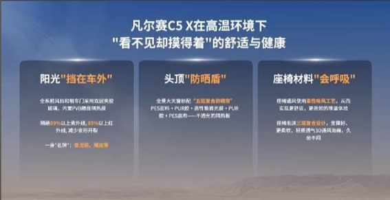夏季的高温给驾驶带来了种种严峻挑战。面对40多度的炙热,车主们不仅要提防爆胎等安全隐患,还需时刻关注车内的空气质量,防止有害气体的释放对身体健康造成影响。为了确保在极端高温下的安全性和健康性,凡尔赛C5X通过了一系列严格的,验证了其卓越的综合性能。