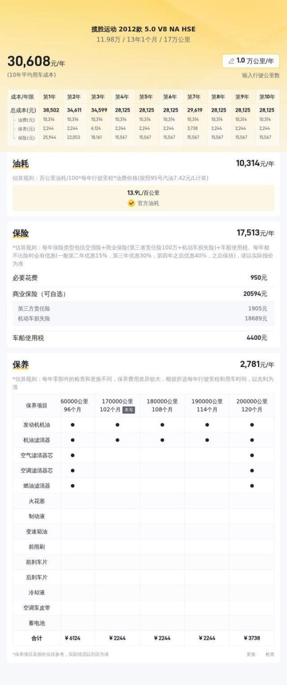 在用车成本方面,根据估算,这辆揽胜运动版的年均综合用车成本大约为31102元。虽然这对于一款豪华SUV来说并不算便宜,但如果您追求的是一款集豪华、性能与舒适性于一体的车型,这样的用车成本是完全可以接受的。