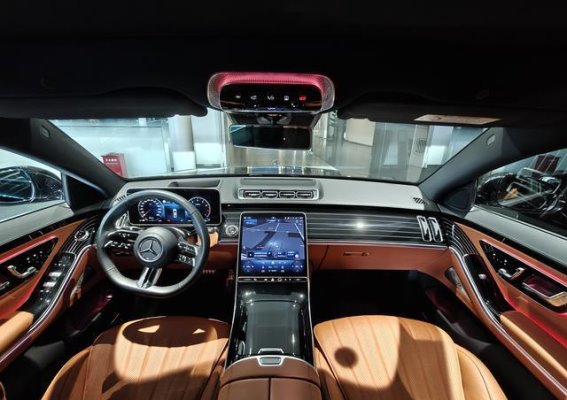 奔驰S级的内饰一直是其引以为豪的部分。通过实际拍摄的图像来看,这款车的内饰无疑保持了奔驰一贯的高标准。车内的真皮座椅与木质装饰搭配得恰到好处,营造出了一种奢华而温馨的氛围。后排座椅的宽敞空间更是让每一位乘客都能体验到如头等舱般的舒适感,而每一处细节,无论是缝线的工艺,还是控制面板的布局,都体现出了奔驰对品质的苛求。
