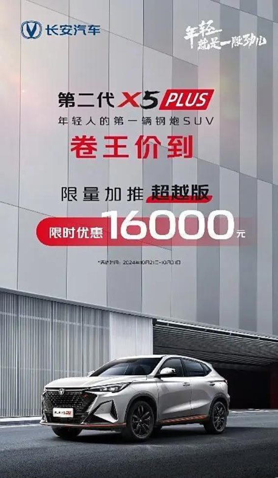 其中,最引人注目的便是长安汽车为回馈消费者的购车优惠。从即日起至10月31日,第二代X5PLUS高能版的售价仅为6.99万元,给消费者提供了极具吸引力的购车选择。与此长安汽车还在10月25日推出了限量加推的第二代X5PLUS超越版,售价优惠16000元,进一步增强了这款车在市场上的竞争力。