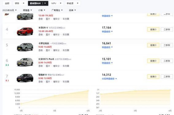 零跑B10自上市以来,凭借稳定的销量表现引起了广泛关注。2025年6月,零跑B10的零售量达到了14075台,在8-12万元价位的紧凑型SUV市场中占据了重要位置。与同价位的宋Pro DM、长安CS75 PLUS等车型相比,零跑B10的销量呈现出持续增长的趋势。这一增长并非偶然,而是表明了零跑B10在市场中的持续吸引力,市场认可度稳步提升。