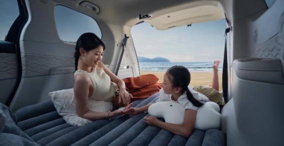 星海V9独有的第三排座椅4/6分折叠下沉设计,让空间变得更加灵活。即便是大件物品,比如孩子上兴趣班时需要带的大乐器箱,也能稳稳地放进车内,而剩余的座位依然能为全家五口提供舒适的乘坐空间。更值得一提的是,在进行周末短途露营时,刘先生将第三排座椅完全放平,前移第二排座椅,铺上充气垫,车内立刻变成了孩子们的移动休息室,既方便又舒适。