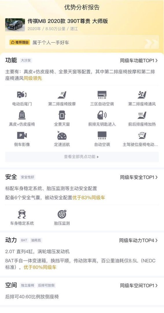 总体来看,2020款传祺M8 390T尊贵大师版凭借其合理的价格、丰富的配置、扎实的动力性能以及宽敞舒适的空间表现,在二手车市场上具有较强的竞争力。无论是需要满足商务需求的专业用户,还是注重家庭舒适体验的车主,这款车都能满足多样化的使用场景。虽然二手车存在一定的个体差异,购车前仍需进行详细的实车检测,但这款传祺M8无疑是一款值得关注的家用MPV选择。