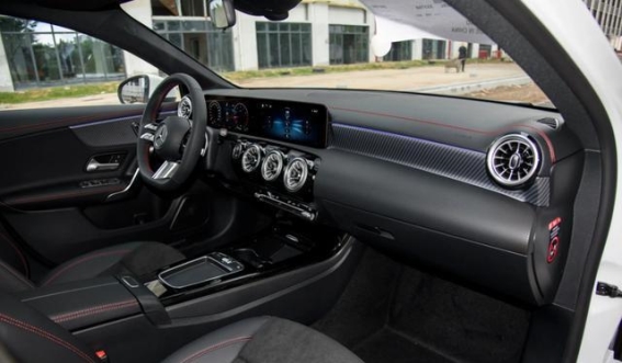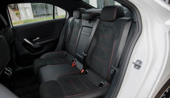 尽管如此,奔驰A级在豪华感的营造上仍有独到之处。内饰设计精致小巧,涡扇造型的金属空调出风口、双连体大屏、蜻蜓式多功能方向盘,再加上高配64色氛围灯的点缀,让车内空间充满科技与精致感,尤其容易俘获年轻女性用户的心。智能化方面,中控屏搭载MBUX车机系统,支持语音控制、远程控制以及车机互联功能,为日常用车带来更多便利。全系标配L2级驾驶辅助,包括全速自适应巡航和主动刹车系统,为驾驶提供基础保障。全系配备分段式双天窗,2789mm轴距带来不错的后排空间,但中央地台较高,加上非独立后悬架,使得舒适性仍显一般。