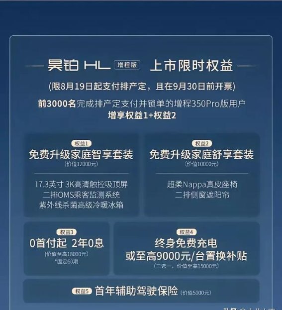 昊铂HL增程版从发布之初便以令人瞩目的性价比优势吸引了消费者的关注。相比纯电版,其起售价低了3万元,这一价格差距使其在市场竞争中占据了有利位置。而更为诱人的,是昊铂为消费者提供的一系列购车福利。终身免费充电、免费送桩、基础保养全免、流量不限量等优惠政策,构成了极具吸引力的购车套餐。三电系统终身质保、金融支持2年0息以及首年辅助驾驶保险赠送等配置,让消费者的用车成本大大降低。Pro版还附赠家庭舒享套装和家庭智享套装,更进一步增强了产品的吸引力。