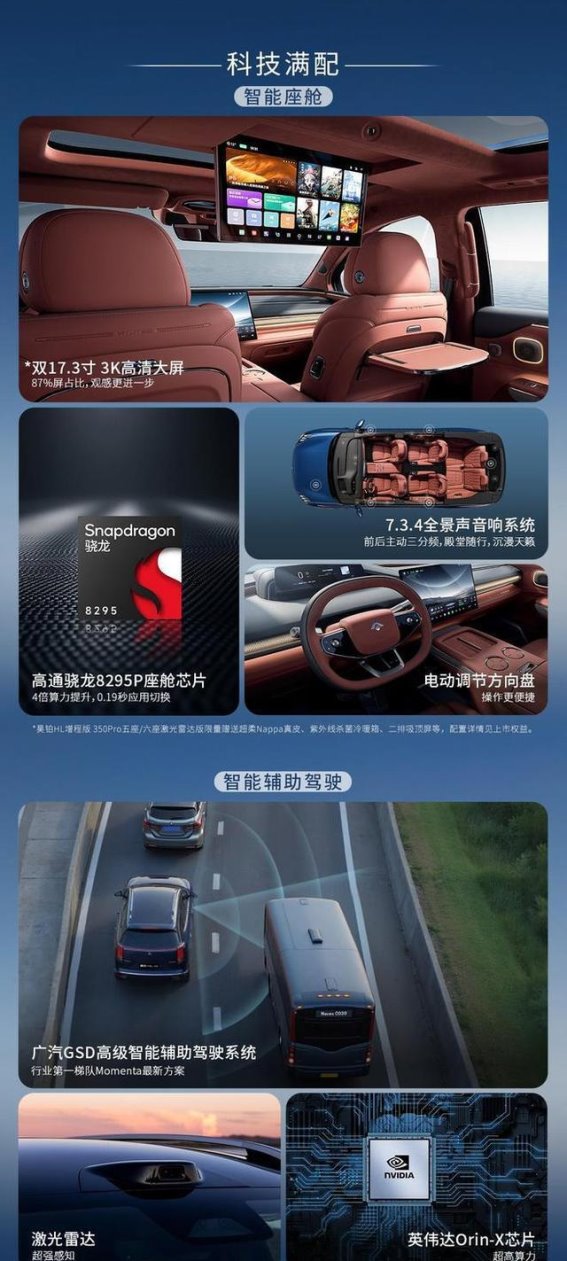 在驾驶体验上,昊铂HL增程版配备了前双叉臂式后五连杆式独立悬架,并搭载智能调节减震器SDC和空气悬架,确保了车辆的平稳驾驶性能。新车还配备了激光雷达和Orin-X芯片,支持自动泊车、城市NDA等功能,进一步提升了智能驾驶体验。昊铂HL增程版的“暗夜之瞳”夜视系统也成为了其独特的卖点,极大提升了夜间驾驶的安全性。