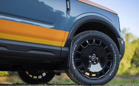除了车身涂装的亮眼设计,福特烈马沙滩特别版的轮毂和轮胎配置同样值得一提。该车配备了专属的黑色轮毂,造型简洁大气,展现出运动气息。配合百路驰A/T轮胎,不仅增加了车辆的稳定性,同时也提升了通过性。无论是平坦的高速公路,还是复杂的沙地和泥泞小道,这套配置都能够为驾驶者提供更加出色的抓地力和操控性。这种轮胎与轮毂的搭配,也让车辆的外观更具力量感与现代感,令人过目不忘。