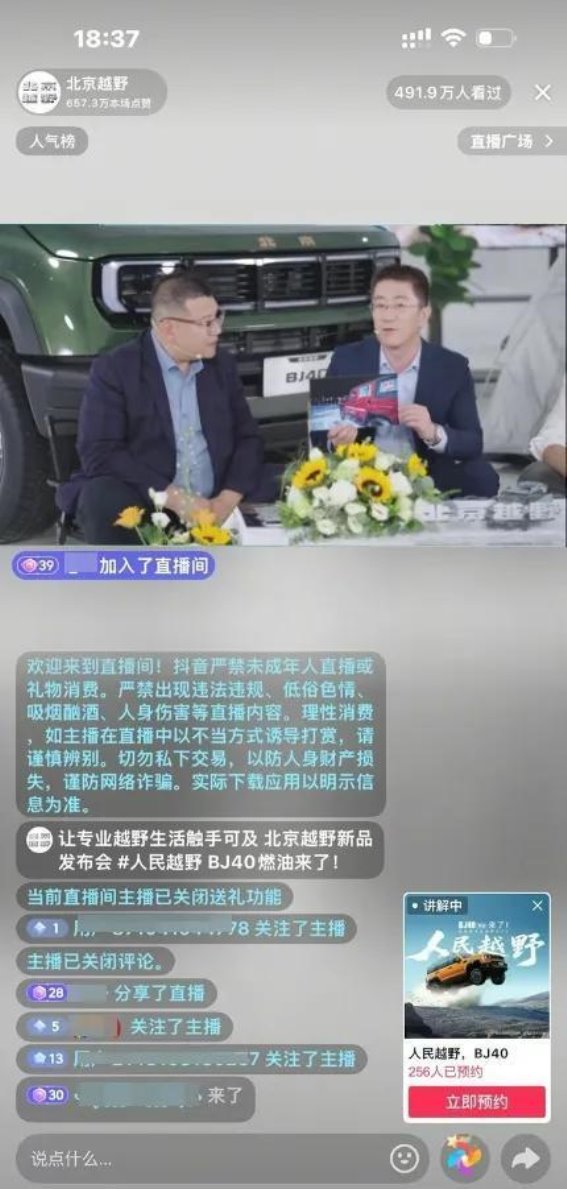 “品星推搜直”闭环的第一环是“品-星”,即从蓄水到种草的全过程管理。在BJ40增程版上市期间,北京越野并未局限于常规宣传,而是通过“强势官宣+品星蓄水”的组合策略,先通过高曝光度的上市活动提升品牌声量,再借助官方抖音号持续直播强化用户连接。配合直播效果通、Feedlive及开屏广告等投放形式,曝光效率与点击率均超过同期竞品,直播预约量与表单提交量同步提升,有效将上市热度转化为用户兴趣,为后续的种草和意向转化奠定基础,实现从关注到兴趣的自然过渡。