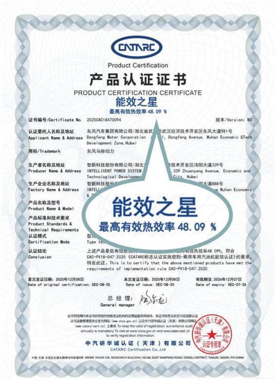 导读:东风汽车近日正式宣布,旗下东风马赫动力再度刷新行业记录,全新1.5T混动专用发动机实现了48.09%的最高有效热效率。这一成绩不仅获得中汽中心“能效之星”认证,