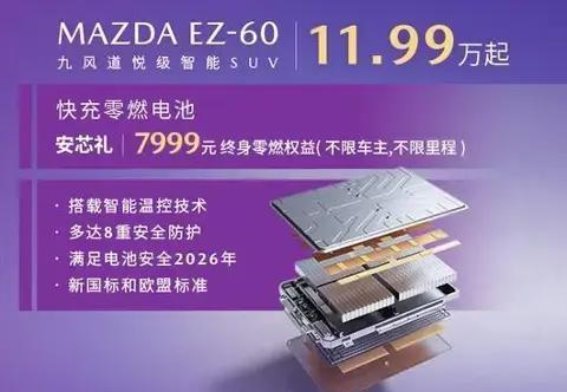 在当下电动出行快速发展的时代,用户对汽车的需求早已不再局限于外观和娱乐功能,而是更加关注核心动力——电池的安全与续航。电池作为整车的“心脏”,每一次充电、每一次出行都与安全密切相关,决定了出行体验的舒适与安心。长安马自达EZ家族(EZ-6 | EZ-60)正是深谙这一核心需求,推出“快充零燃电池”技术,旨在从根本上解决电池安全与效率问题,为用户提供全方位的安心保障,让每一次驾驶都从容无忧。