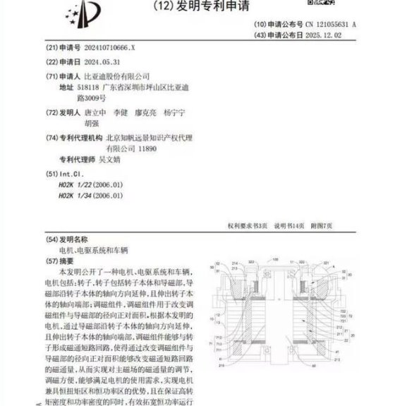 随着电动汽车技术的快速发展,续航问题一直是消费者关注的重点,尤其是在高速行驶过程中。许多车主都有过这样的体验:在城市道路上行驶时,电动汽车的电池续航表现令人满意,但一旦上了高速,续航便迅速下降。造成这一现象的根本原因,主要是由于传统电机的效率在高速行驶时出现显著下滑。为了解决这一问题,比亚迪近期公布了一项突破性的技术——可变磁通量永磁电机专利。这项技术旨在通过智能调节电机的磁场强度,从而在不同车速下实现更高的能效,尤其是在高速巡航时表现得尤为突出。本文将详细分析这一技术的原理、优点、潜在缺点及量产难点。