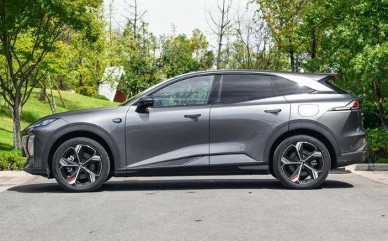 侧面来看,深蓝S07依然保持着小溜背的设计风格,流线型车顶的弧度赋予了整车更多的运动感。双色车身的搭配,进一步营造出了悬浮式车顶的效果,既提升了视觉美感,也增强了整车的动感气息。车身的门把手采用弹出式设计,这一设计不仅增添了现代感,还能有效减少风阻,提升行驶时的空气动力学性能。粗壮的黑色饰板装饰在车轮眉和侧裙部位,为整车增添了力量感,而五辐式花瓣轮毂则赋予车辆更加大气的视觉效果。