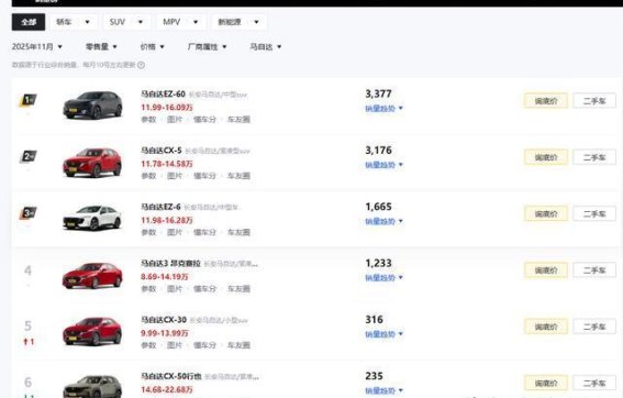 仔细分析,EZ-6的销量问题并非偶然。实际上,这款车在设计和技术上并没有给消费者带来足够的新鲜感。EZ-6被普遍认为是一款“换壳车”,它实际上基于长安新能源平台开发,外观、内饰甚至底盘结构都与长安深蓝SL03或启源A07等车型高度相似。唯一的区别在于,EZ-6配备了马自达的LOGO和品牌调校。尽管价格上进行了大幅下调,增程版从最初的13.98万元降至11.98万元,纯电版的价格也相应调整,但即便如此,EZ-6依然未能扭转销量低迷的局面。2024年11月,EZ-6的销量仅为1665辆,远低于预期目标。马自达显然已经将诚意和价格优势都展现出来,但市场的反馈依然冷淡。