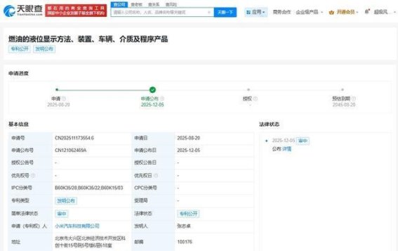 小米汽车近日迎来了一项重大突破。12月11日,天眼查公布了小米汽车科技有限公司申请的最新专利,名为“燃油的液位显示方法、装置、车辆、介质及程序产品”。这项专利的推出,标志着小米在智能汽车领域的技术创新进入新阶段。与此小米的三款新车也相继曝光,显示出其在电动汽车及增程式汽车领域的雄心。
