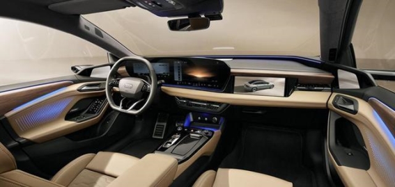 内饰方面,A6L e-tron同样展现出豪华与科技并存的特点。三块大小不一的液晶屏横向排列,分别为11.9英寸、14.5英寸和10.9英寸,配合第二代增强抬头显示AR-HUD,驾驶者在操作时获得直观、便利的视觉体验。车内搭载华为乾崑智驾辅助系统,实现城市点对点自动导航辅助驾驶(NOA),提升了驾驶的智能化和便利性。座舱氛围灯、座椅材质以及细腻的做工细节,也体现了中大型豪华车应有的舒适和档次感,为高端用户提供了兼具科技感与豪华感的乘坐体验。