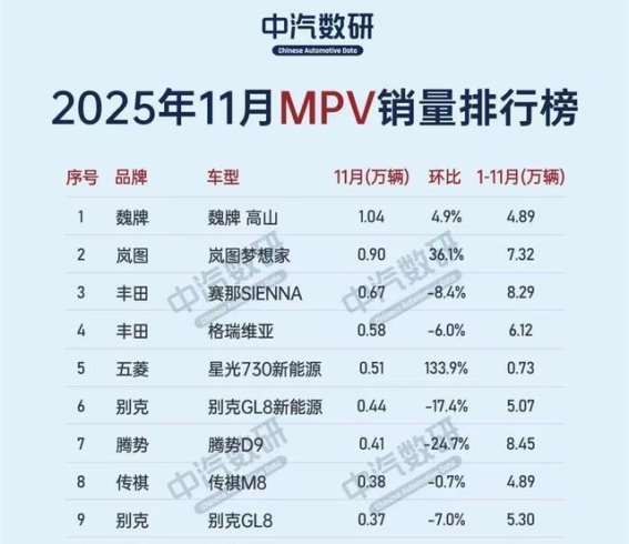 高端MPV市场并非易于征服的领域。尽管国产新能源的崛起带来了魏牌高山、岚图梦想家、腾势D9等黑马车型,抢占了一部分合资市场,但自主品牌在MPV市场尚未形成碾压优势。从销量来看,自主品牌车型固然在前排,但丰田赛那/格瑞维亚、别克GL8新能源等合资车型仍紧咬不放,整体销量差距有限。整个MPV市场更像是一片群雄逐鹿的战场,没有哪款车型可以轻松一骑绝尘。智界V9若想脱颖而出,必须具备独特的差异化优势,才能在激烈竞争中赢得市场认可。