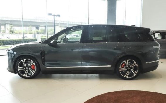 车身侧面是2026款蔚来ES8外观中较为耐看的角度之一。悬浮式车顶设计在视觉上拉低了车身重心,使原本体量不小的车身看起来更加修长。腰线走势平直流畅,从前翼子板延伸至车尾,与隐藏式门把手自然衔接,整体线条简洁干净。21英寸轮毂搭配265/45 R21规格轮胎,在视觉效果与实际舒适性之间取得了相对均衡的取舍。下方大面积黑色包围辅以镀铬饰条点缀,使整车在豪华与实用之间保持了一种稳妥的平衡,更符合中大型家用与商务兼顾的定位。