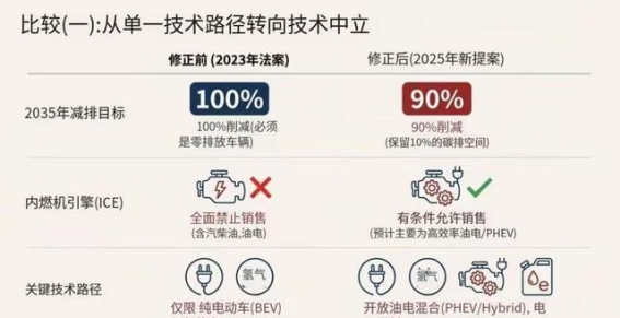导读:欧盟近日发布了最新的汽车政策方案,引发了全球汽车产业的高度关注。此前,欧盟曾计划在2035年全面禁售燃油车,目标是实现新车100%零排放,但最新方案对这一目标进