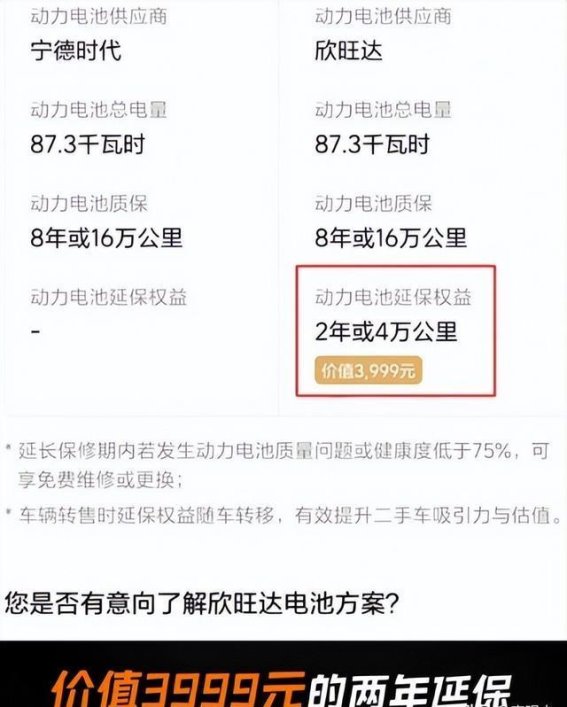 尤其是在新能源车型的推广中,这种“4000元让利”的手段被频繁使用。厂商通过将一线品牌电池替换为非一线品牌,配合一些赠品和延保服务来吸引价格敏感的消费者。小李曾陪朋友去看车时,销售顾问特别强调:“选择这款配置能节省4000元,还送两年延保,相当于白捡的福利”。对于电池品牌的不同,销售顾问却轻描淡写,完全没有提及核心配置的潜在影响,导致许多人误以为“电池品牌应该没太大差别”,最终轻松接受了这一看似划算的交易。