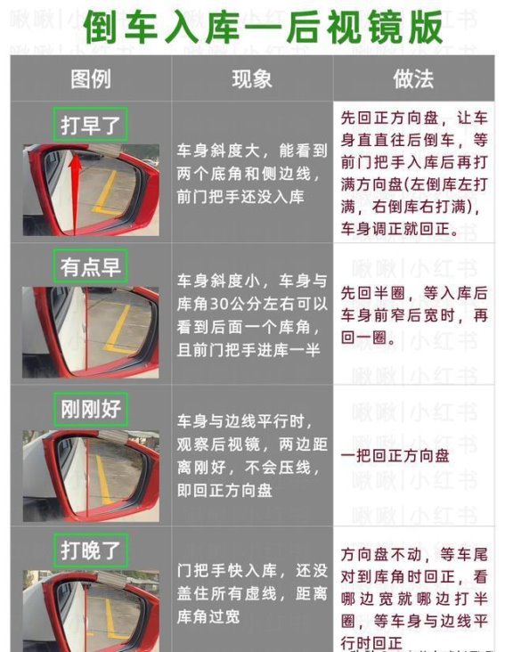 倒车入库是最常见的一种停车方式,特别适用于标准垂直车位。在这种情况下,操作的关键在于如何通过后视镜找准参照点,确保车辆进入车位的精准度。车主需让车身与库边线保持约30厘米的距离,向前行驶。接着,当右后视镜与目标车位的右边线对齐时,车主应迅速停车。此时,打满方向盘并挂倒挡,开始倒车。倒车过程中,车主需紧盯左后视镜,当看到车位的左侧库角或左侧车辆的车头时,立即回正方向盘,倒车。通过左右后视镜观察,确保车身与边线平行,微调方向直至车身完全入库。