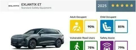 此次Euro NCAP中,ET在四大核心安全项目上均取得了出色的成绩:成人乘员保护得分90%,儿童乘员保护得分85%,弱势道路使用者保护得分76%,而安全辅助系统得分则为79%。这些优异成绩背后,是ET在整车安全设计与技术研发方面的长期积淀和持续创新,充分展现了其全球安全标准下的硬核实力。