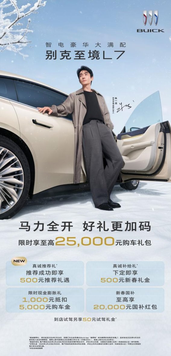 自上市以来,别克至境L7在终端市场持续热销,迅速登顶增程轿车销量榜首,每销售四台增程车中就有一台是别克至境L7。凭借顶尖的增程技术、越级的豪华体验以及高阶智能辅助驾驶,别克至境L7满足了主流新能源用户对高品质出行的需求,也成为冬季出行的首选。在新春佳节,别克至境L7通过暖心购车礼遇再次向市场证明:在寒冷冬季,增程才是最实用、最贴心的出行方案,为每一位车主带来安心、舒适和高效的冬季出行体验。
